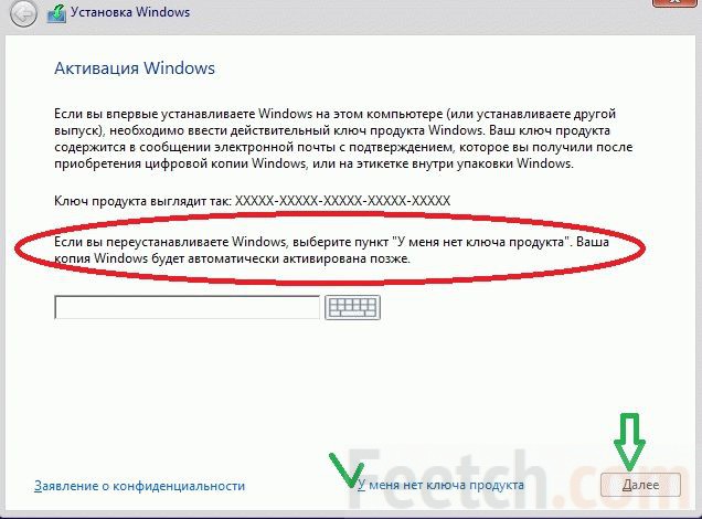 В момент перезагрузки внимательно читайте надписи. Как правило, установщик Виндоус в этот период требует нажать «любую клавишу» на клавиатуре. На это даётся примерно 5 секунд, отсчётом служат появляющиеся точки. Не упустите момент! Рекомендуется носитель создавать комбинированный (мультизагрузка) на процессоры 32 и 64 бита. Далее нужно терпеливо ждать, пока дистрибутив распакует интерактивный интерфейс и приступи к опросу нас на предмет желаемых опций. Попутно в окнах будет опция Восстановление системы, пропускайте её, у нас другие планы, жмите установить. Через какое-то время появится окно с предложением ввести ключ, прочитайте внимательно, там написано кое-что как раз для нашего случая.