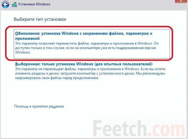 Переустановка Windows 10 требует выбора соответствующей опции. Она называется Обновление. Совсем как то, что мы обсуждали в начале. При этом произойдёт переустановка Windows 10 с сохранением всех пользовательских программ. В принципе выборочный тип позволяет сделать то же самое, но при этом нужно быть хотя бы немного в курсе того, что именно делается. В противном случае можно запросто снести свою операционную систему вместе с файлами, настройками программами.