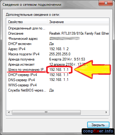 Если в настройках сетевой платы установлено автоматическое (динамическое) получение айпи-адреса, то в состоянии сети (по значку сетевой карты правой клавишей мыши - состояние - кнопка «Сведения») будет следующая картина: «Тип адреса - получить автоматически», а в полях айпи-адреса и основного шлюза будет указан наш текущий IP и шлюз (адрес модема).