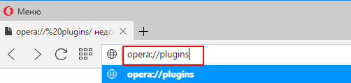 Многих пользователей привлекает такой браузер, как Опера. Принцип обновления чем-то напоминает работу в браузере Mozilla Firefox. Сначала необходимо открыть меню, после чего выбрать «Плагины». Это же можно сделать, если в адресной строке ввести «opera://plugins».
