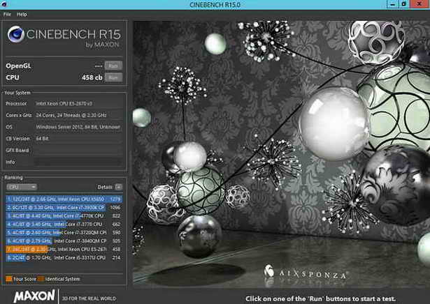 Весьма популярный тест процессора, хорош, в частности тем, что имитирует выполнение некой реальной работы, т. к. производится рендеринг 3D сцены. Программа бесплатна и работает как под Windows, так и под iOS.
